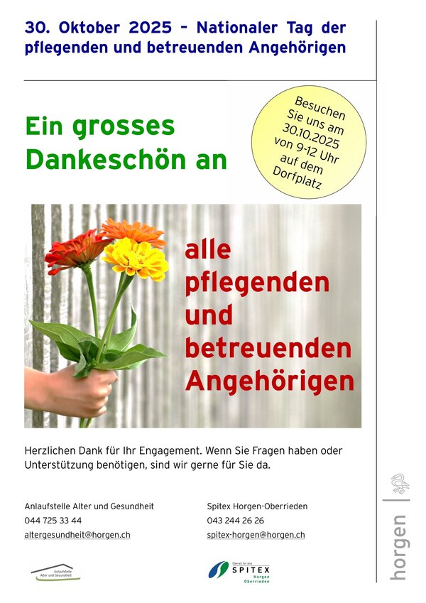 Wir sind an diesem ehrwürdigen Tag mit einem Stand von 9-12 Uhr auf dem Dorfplatz in Horgen präsent – kommt vorbei, informiert euch, stellt Fragen oder tauscht euch aus. Wir freuen uns auf euch 💬